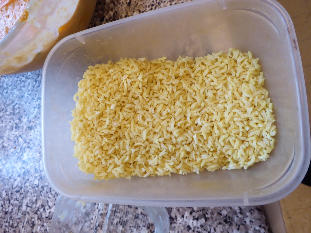 The most interesting thing about this piece is the butter/saffron/milk mixture, pictured below. This turns out delicately spiced and exotic, with a kind of floral note from the cardamom. I don't know how you're supposed to eat it: for me, I may have failed immediately by not using sufficient rice.