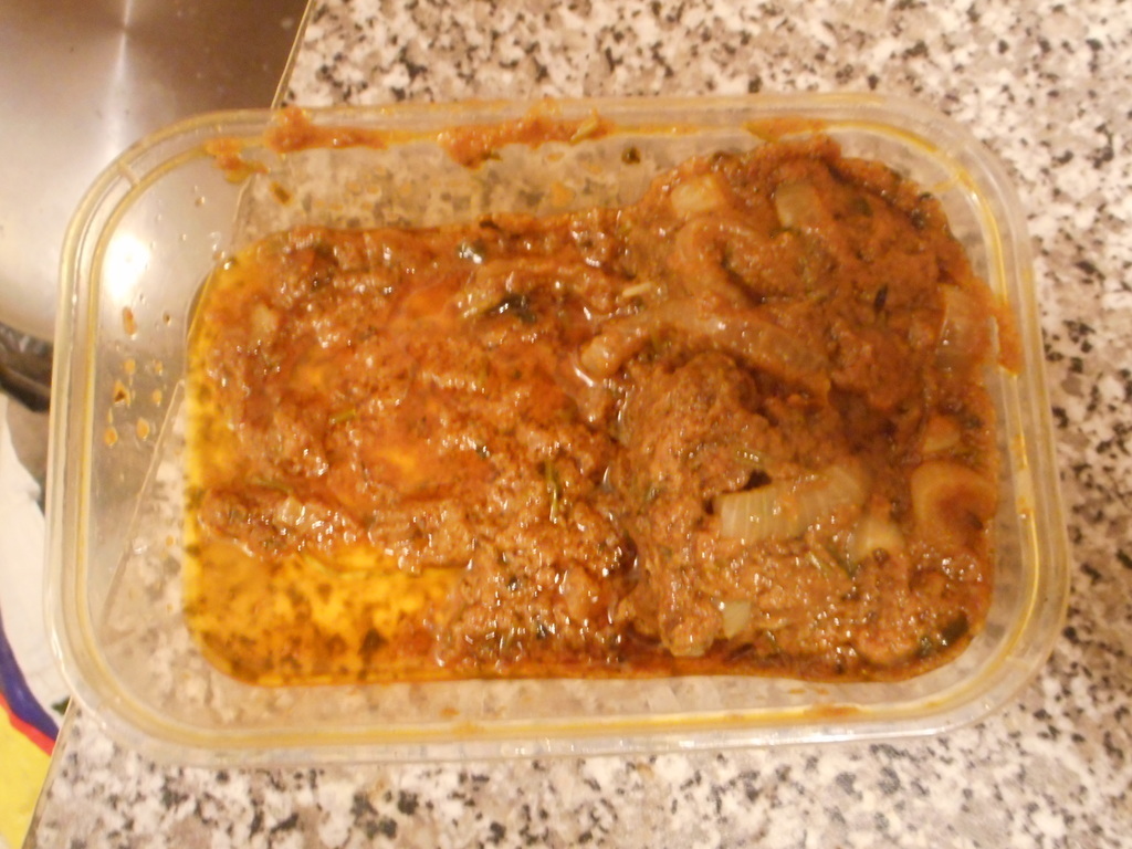 The Wilkie marinade mixed with some pre-made Glasgow sauce. The marinade recipe provided by Wilkie is nowhere near large enough to fully cover the volume of meat here, which is 1kg. As such it's more of a tikka-ish marinade with heavy onion flavouring.