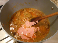 Adding a large amount of garlic butter to this scarily unhealthy curry, and stirring it into a consistency.