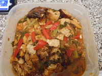 It looks gorgeous in the pan. It's also fiery as all hell, with a deliciously full flavour. I found that it's actually the marinade that's doing this spice, which is a little counterintuitive, given that it had a really not insubstantial amount of curry paste inside it.